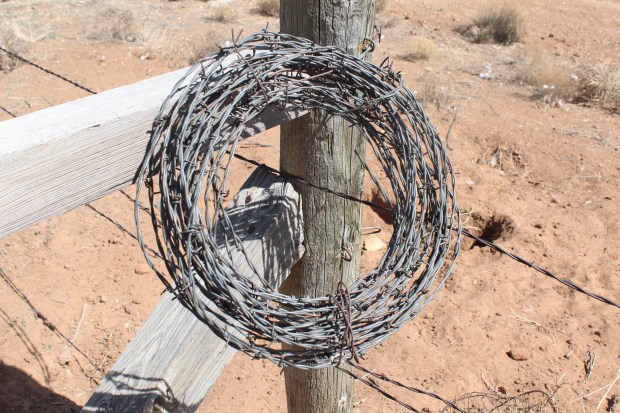 One thing I dislike about this place is just how ugly and messy things can look. The tumbleweeds coupled with the wind picking up trash from everywhere is horrid. We also have four spots on the property where there is old barbed wire piled up. I just finished picking up and winding the barbed wire from one spot in front of the house. One down! What an eye sore that was! Raking up the rest of the small trash once the wind slows down. Can you tell where the dogs have been digging? That big messy pile of tumbleweed and trash was actually a bundle of tangled wire. Where it came from? I have no idea!