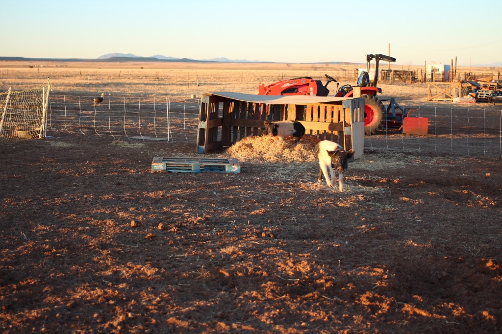Lately, I have been trying my best to keep extra weight on our pigs with borderline results. I can see a difference in a few of my pigs but not all. There are some that I just can’t seem to get out of skinny mode. The cold weather definitely does not help. I don’t think it’s a good idea to separate them because of the cold, as It’s nice to have others to cuddle with when the temperatures really drop, but I may end up having to. I have multiple feed bins scattered so they are not hogging up the feed and can all eat without being interrupted by each other. They have all been treated for parasites and have larger than normal pens. I’m wondering if room to run is my problem? I doubt that though. They do get a lot of exercise as they can run around and chase each other, but I don’t think that should make an impact in difference. I feed them twice a day, a scoop for each (a scoop=3 quarts) on both feeding times. Now, they did come from a hotter climate than what we have here, maybe they are still not used to it?