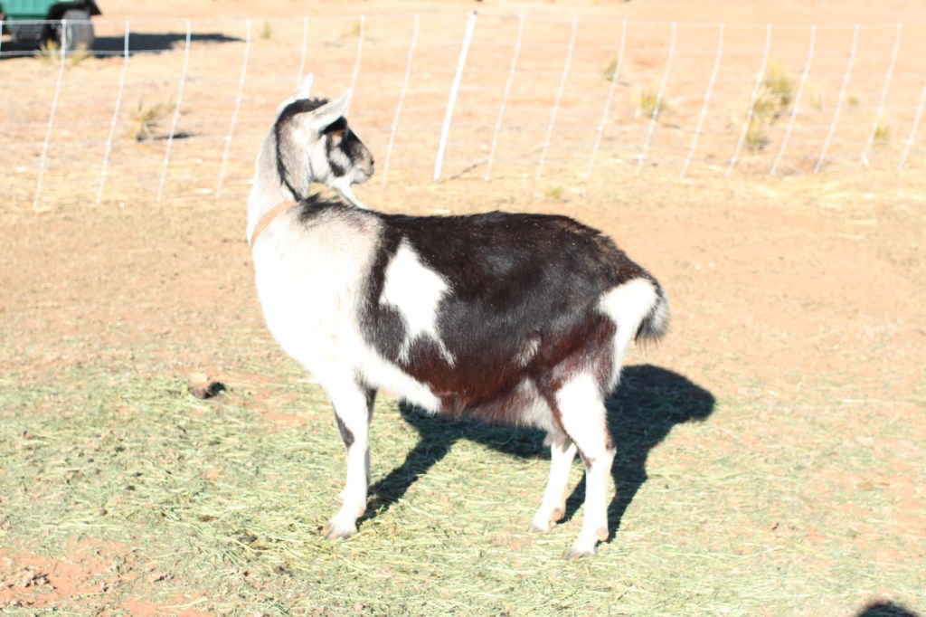 The mini doe is also trained to stand, but she’s hard to catch. I’ll have to work with her on that. I know some goats are timid by nature and just don’t like to be touched.